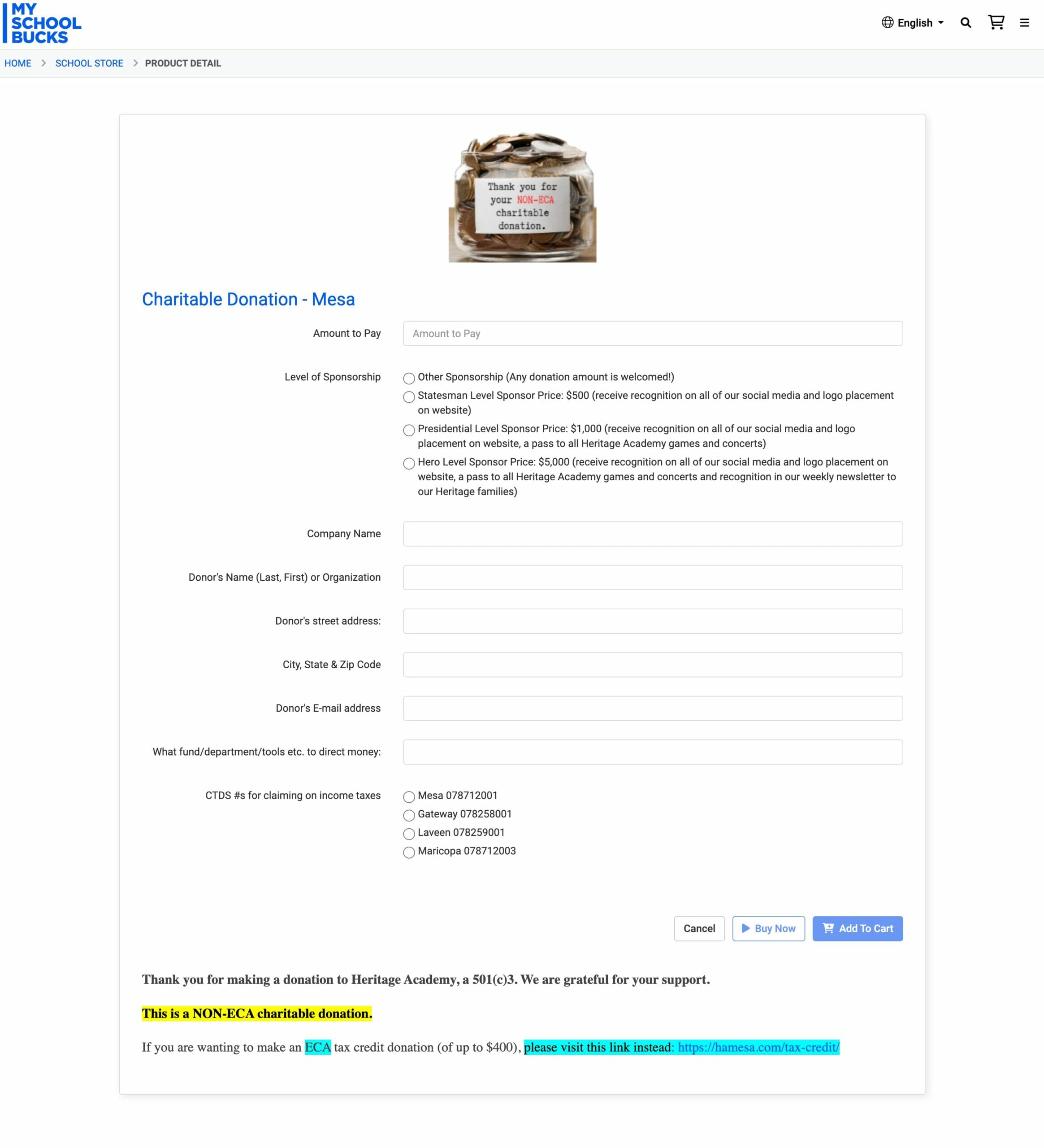 If you are wanting to make an ECA tax credit donation (of up to $400), please visit this link instead CLICK HERE: